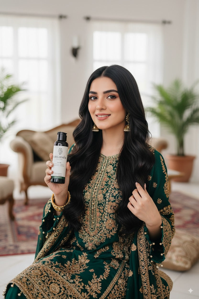 Organea is one of the best organic hair oils in Pakistan, crafted with 10 natural herbs that strengthen roots, reduce hair fall, and promote natural thickness and shine.